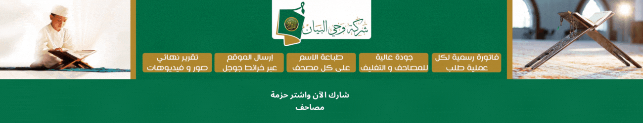 مواصفات المصاحف الموجودة في شركة وحي البيان